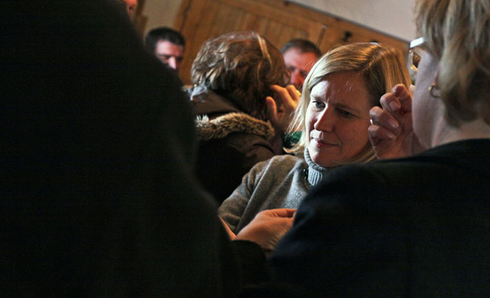 organisiert vieles im Betrieb und packt auch bei der Arbeit mit an. Ihre Lieblingsbeschäftigung teilt sie mit mir - das Schnapsbrennen.